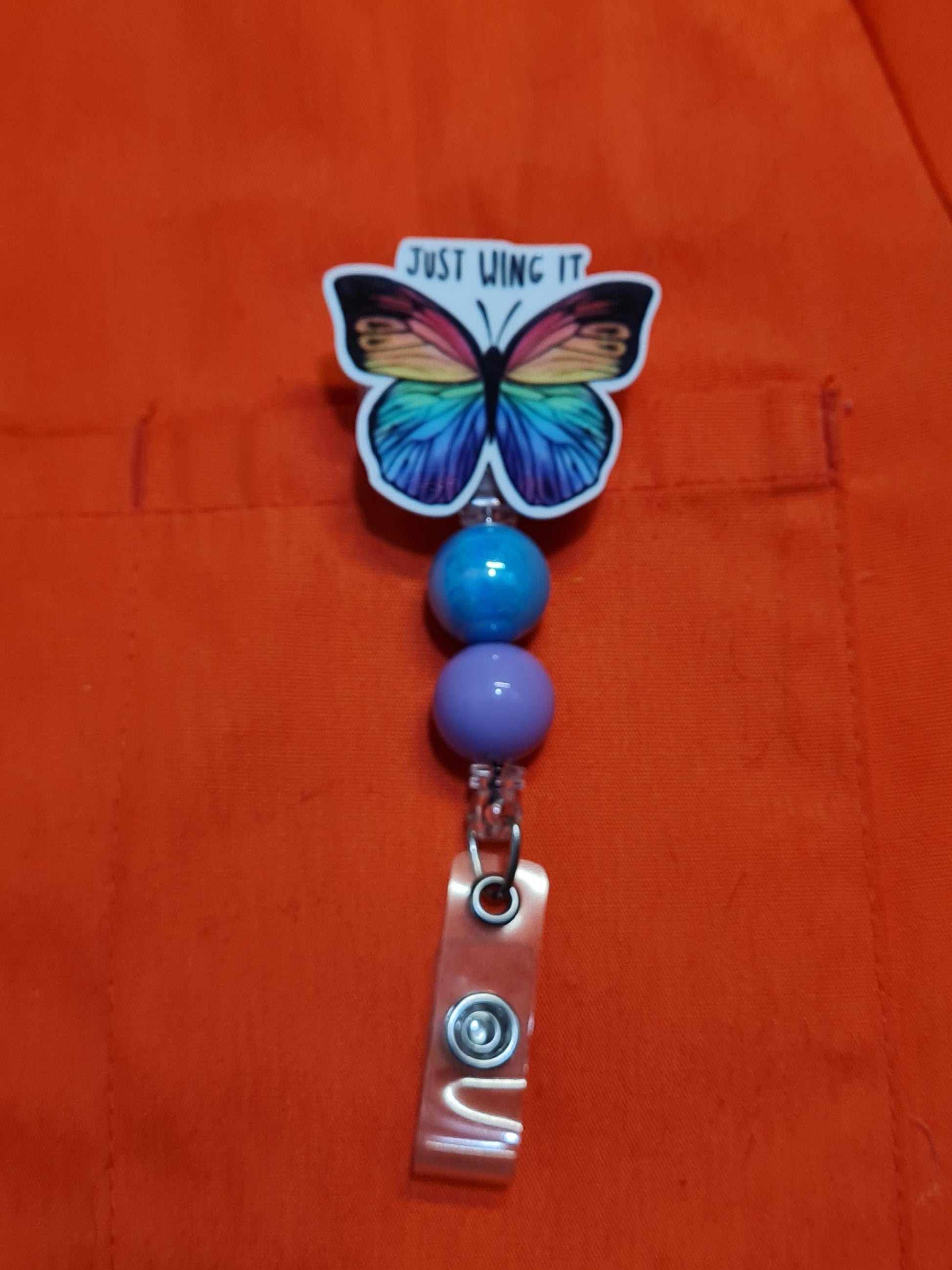 Just Wing It Badge Reel ~ ID Badge Reel ~Health Care Badge Reel ~Medical Badge Reel ~ RN Badge Reel ~ Nurse Badge Reel~ Butterfly Badge Reel